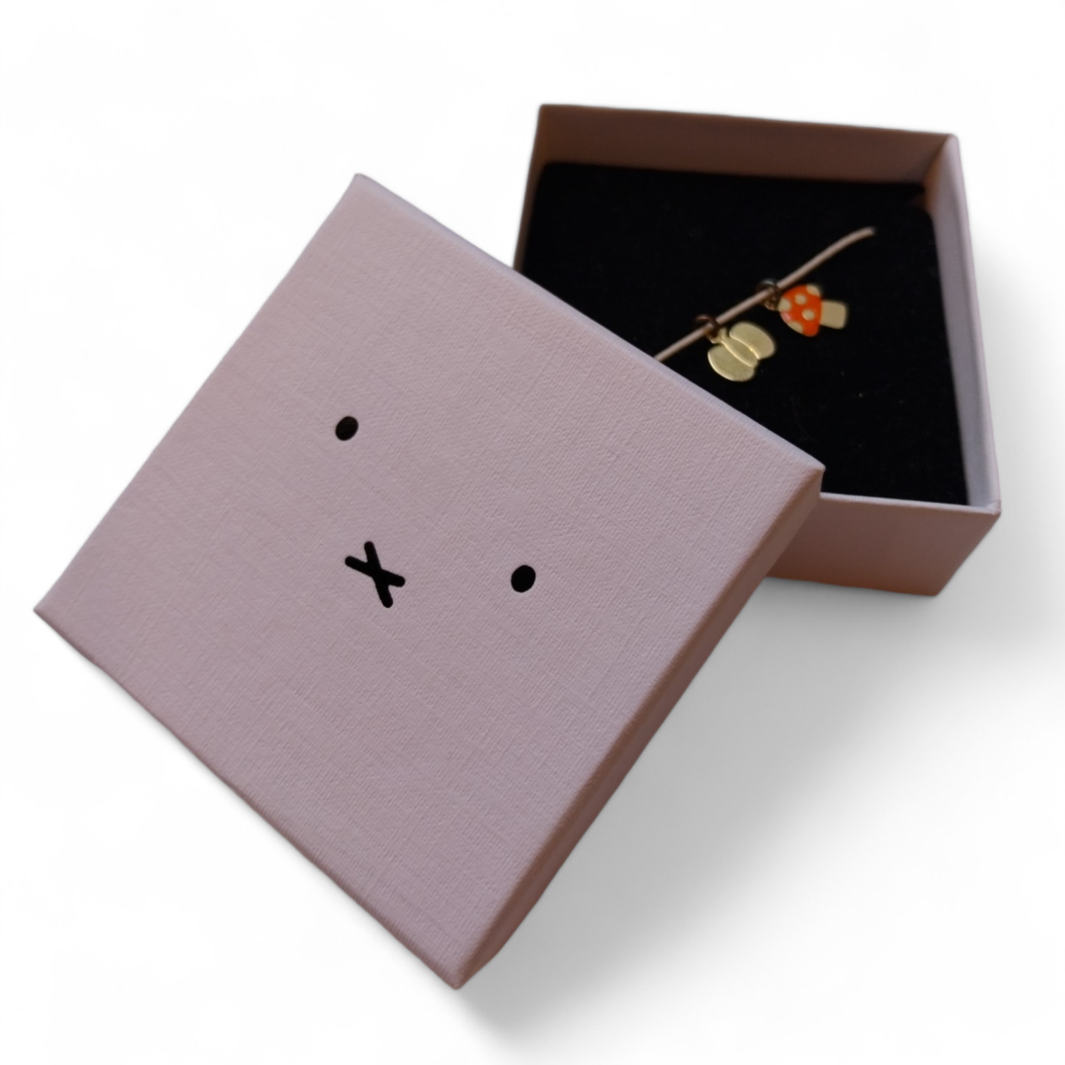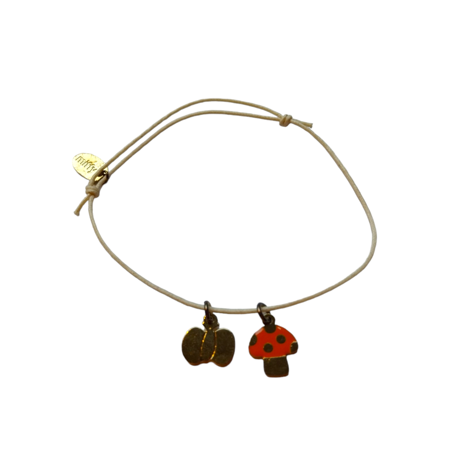 Bracciale in corda bianca regolabile con ciondolo funghetto e ape.