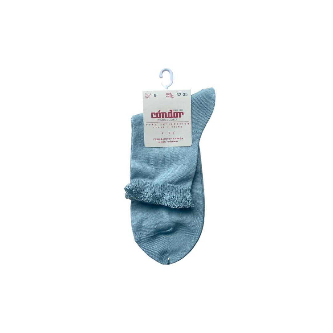 Calzini corti azzurro carta da zucchero con bordo merletto