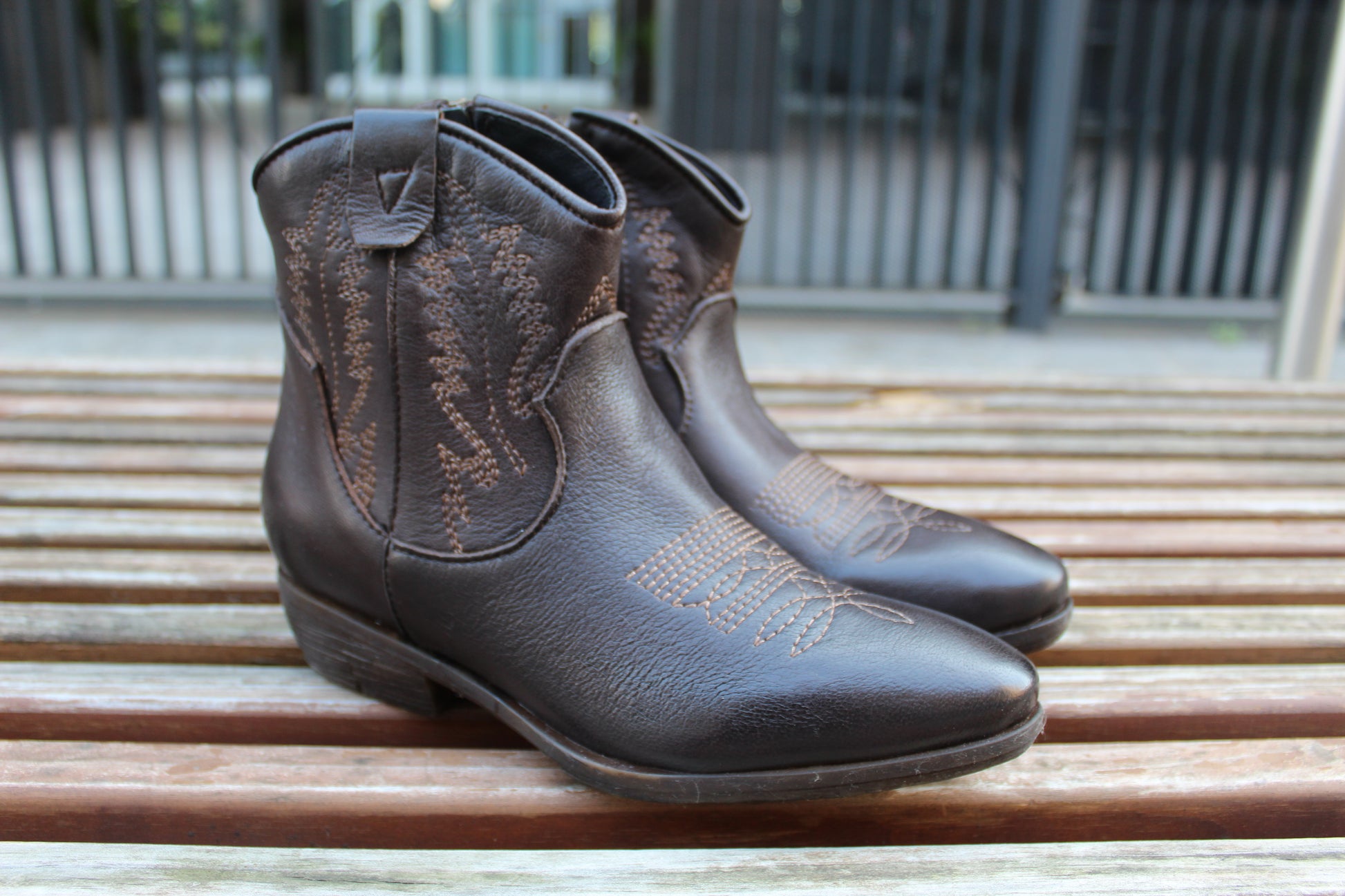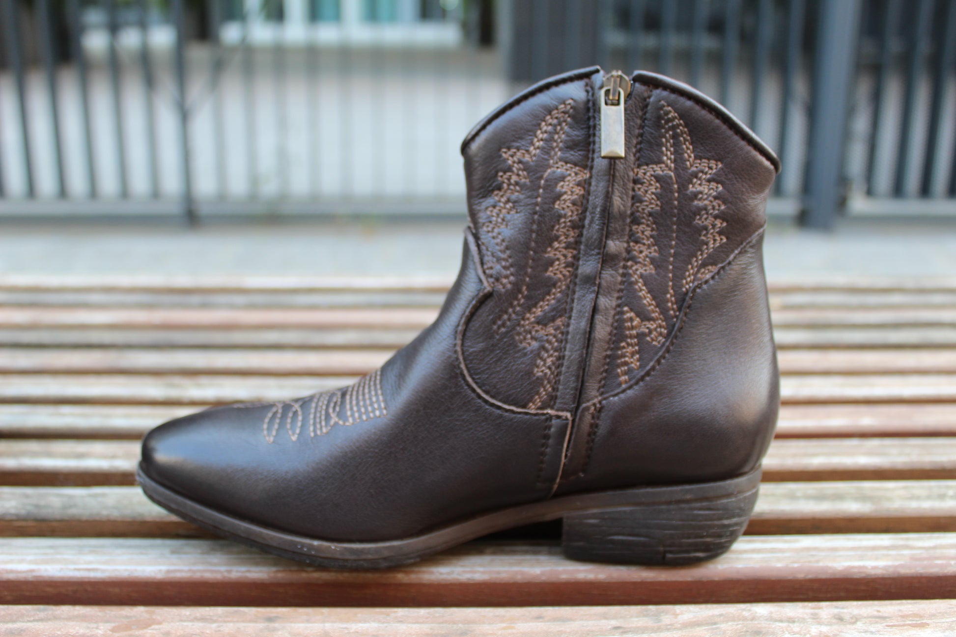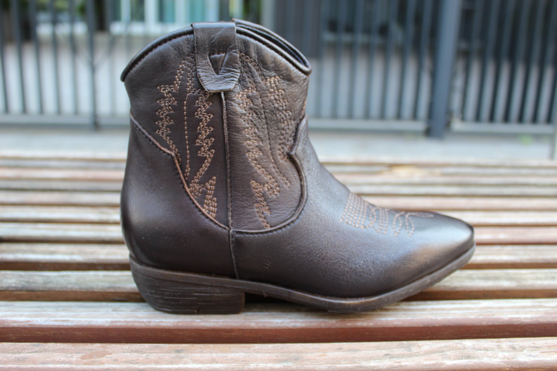 Stivaletto Texano in vera pelle liscia color testa di moro con impunture a contrasto caffè a classico motivo texano.