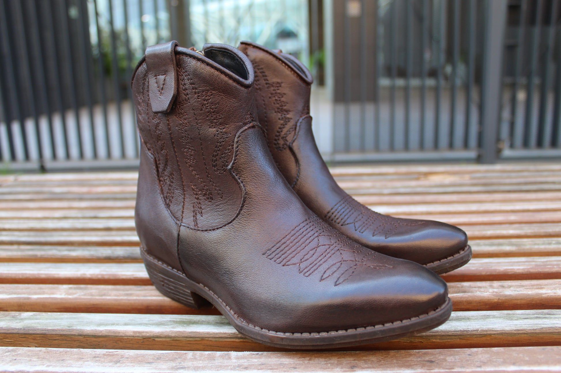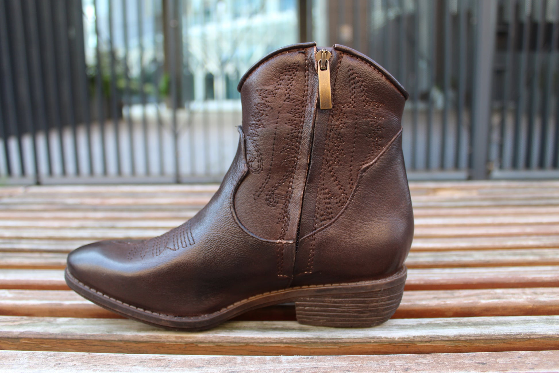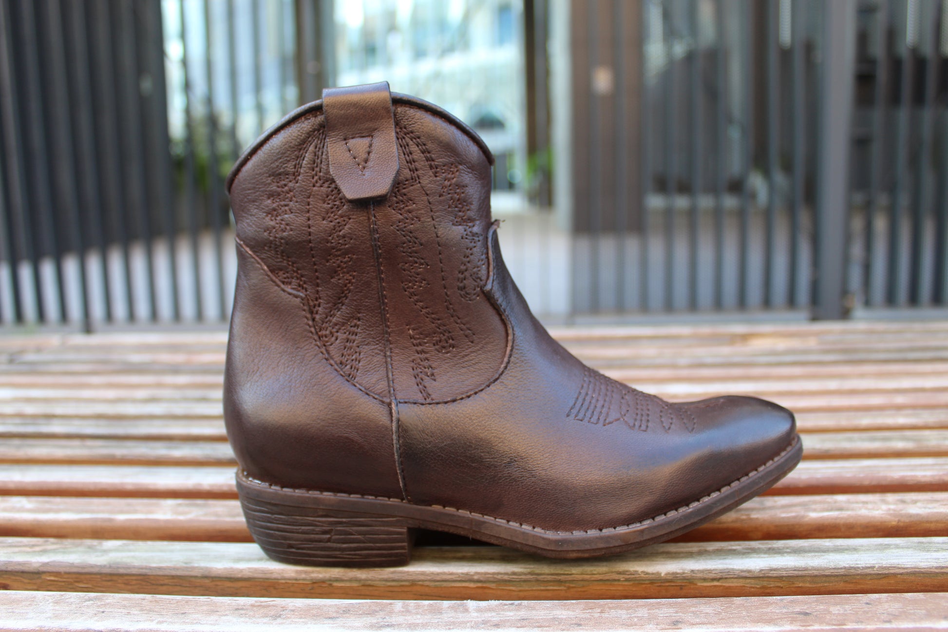 Stivaletto Texano in vera pelle liscia color testa di moro con impunture tono su tono a classico motivo texano.
