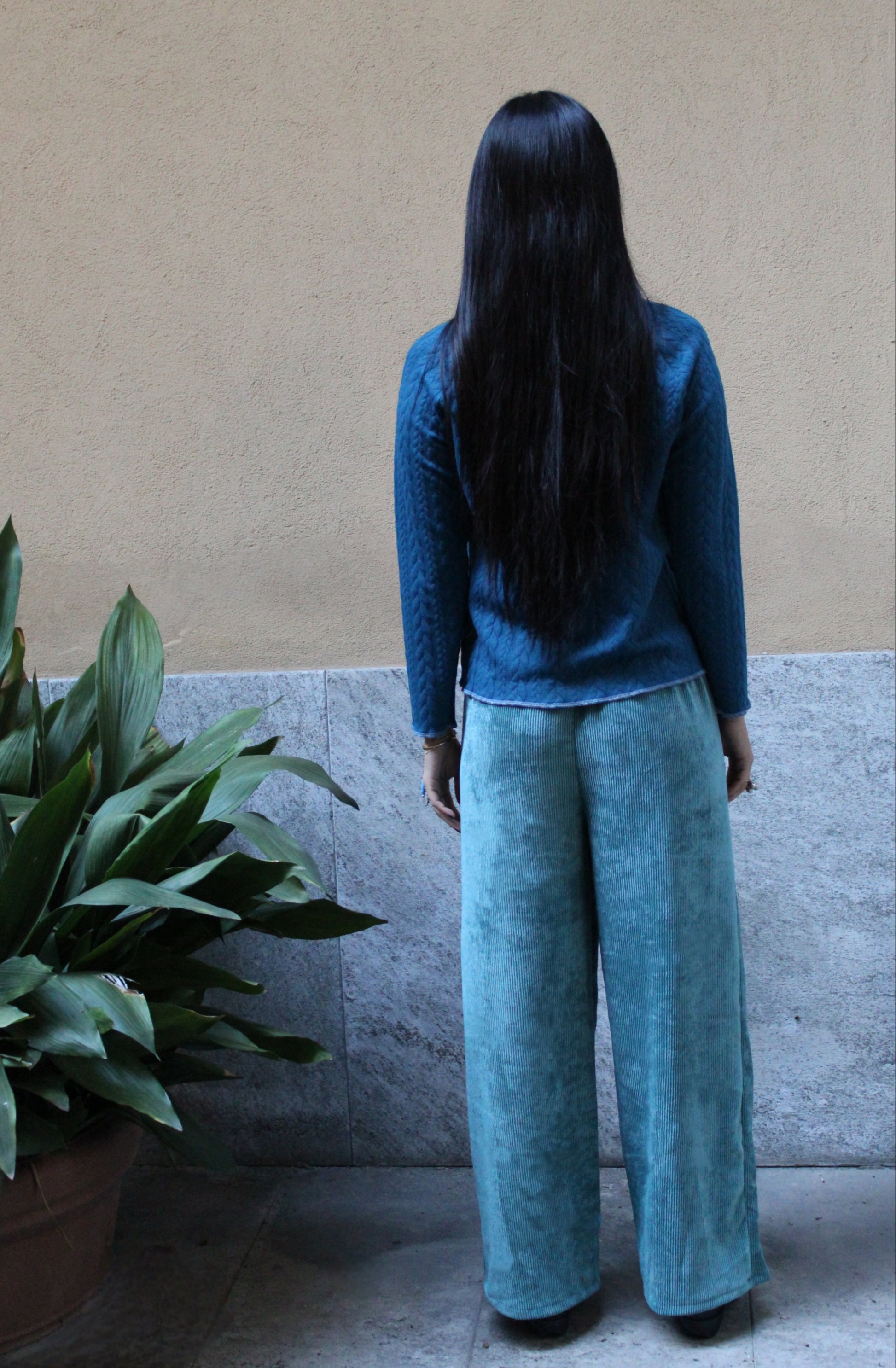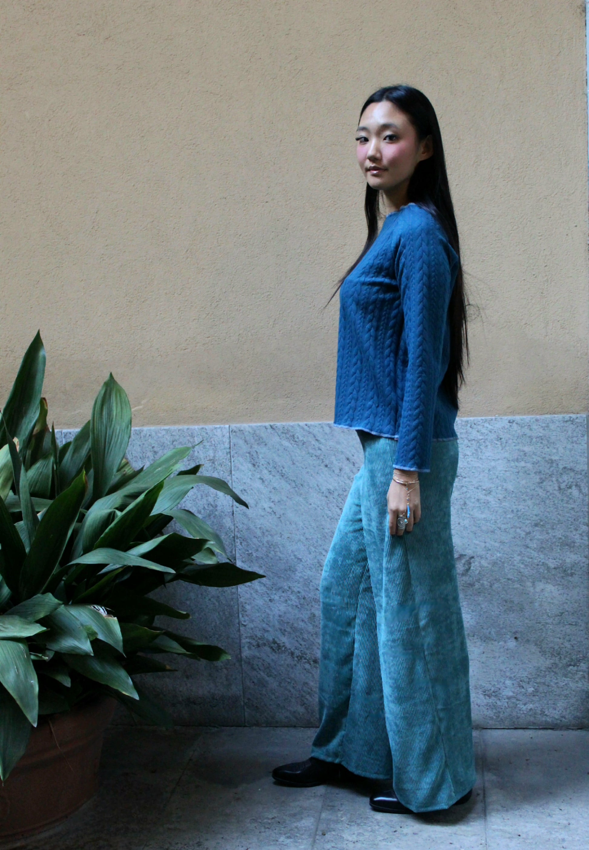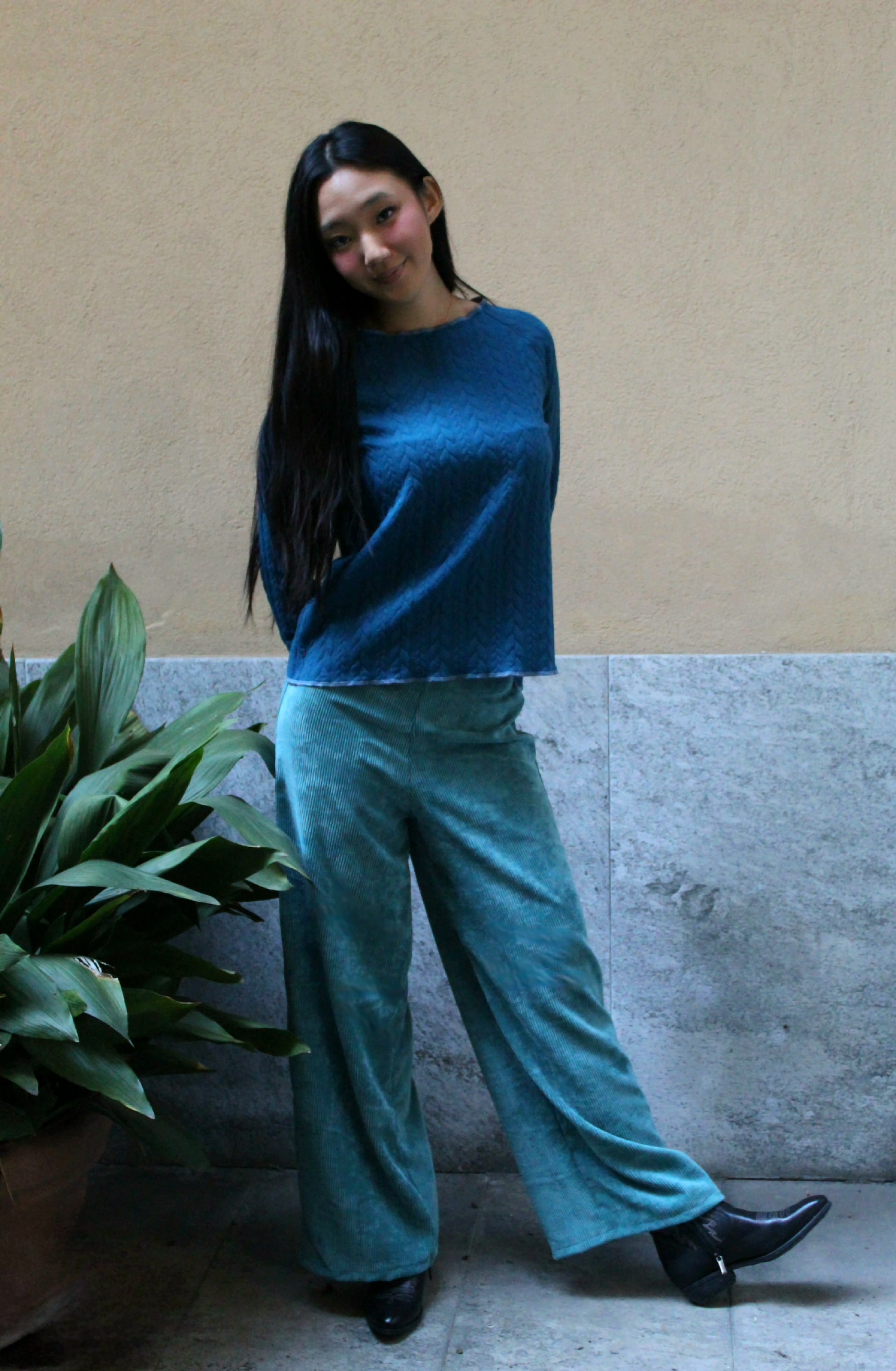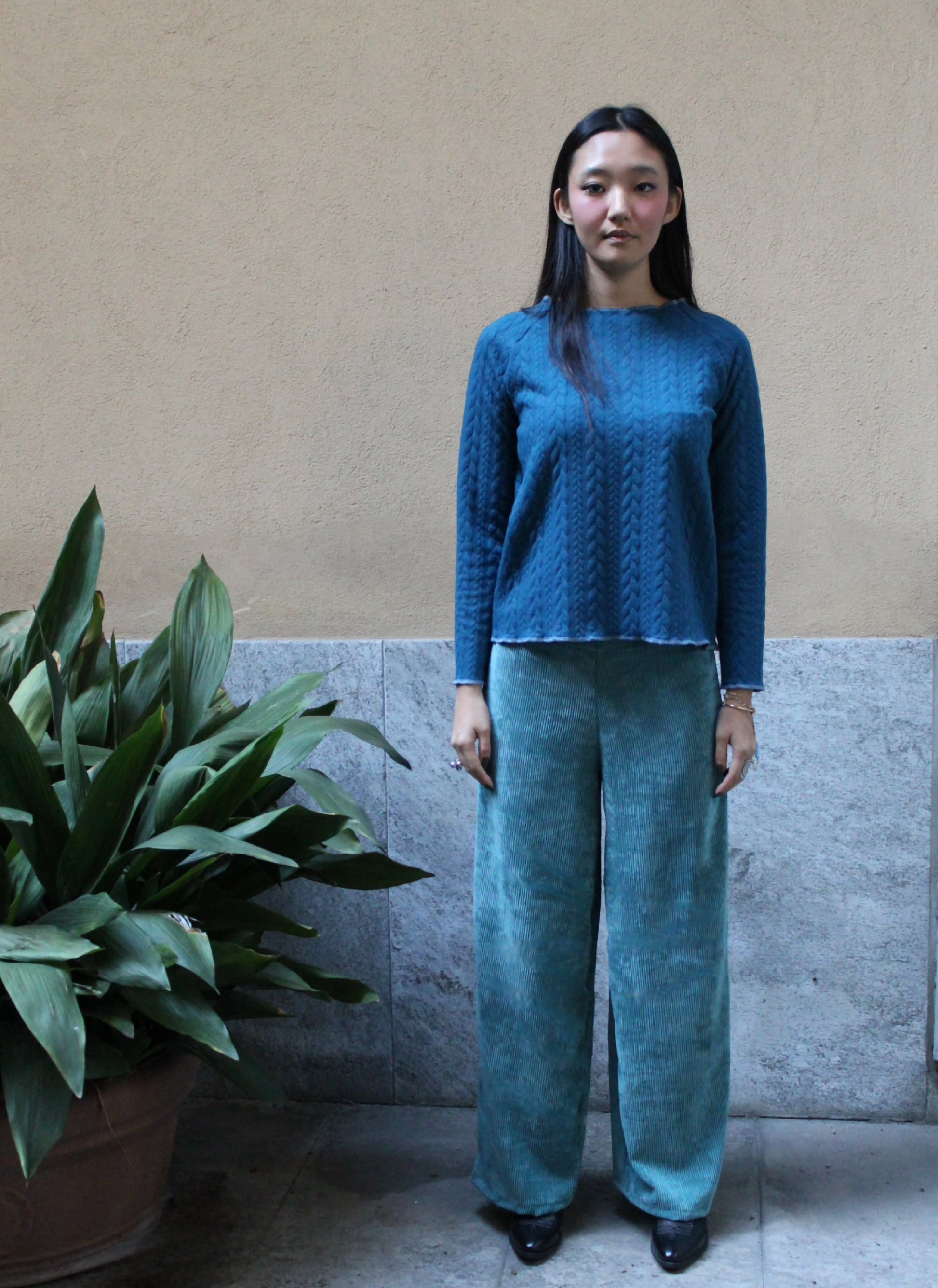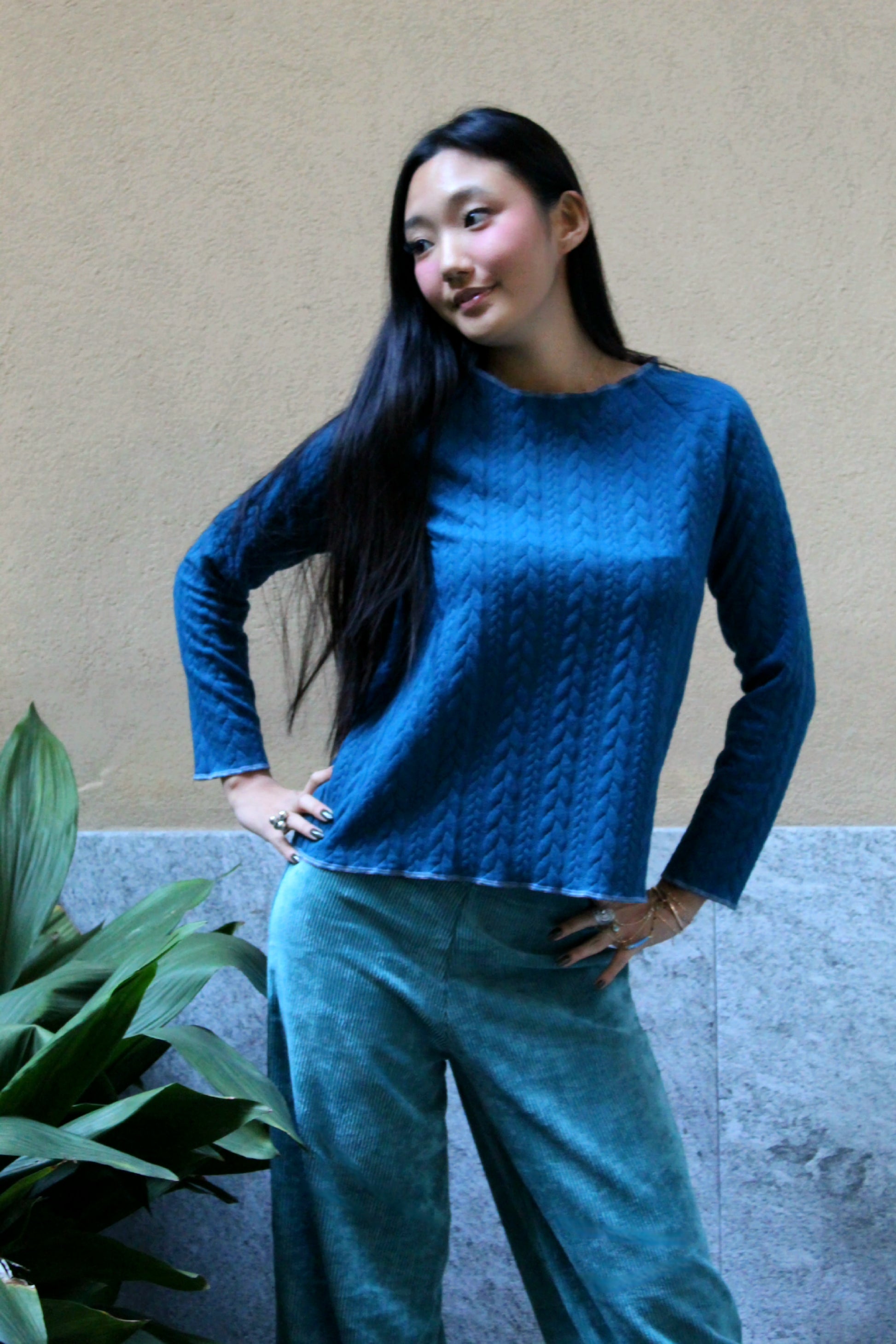 Felpa in tessuto elasticizzato con motivo a treccia con manica raglan. Collezione autunno/inverno.