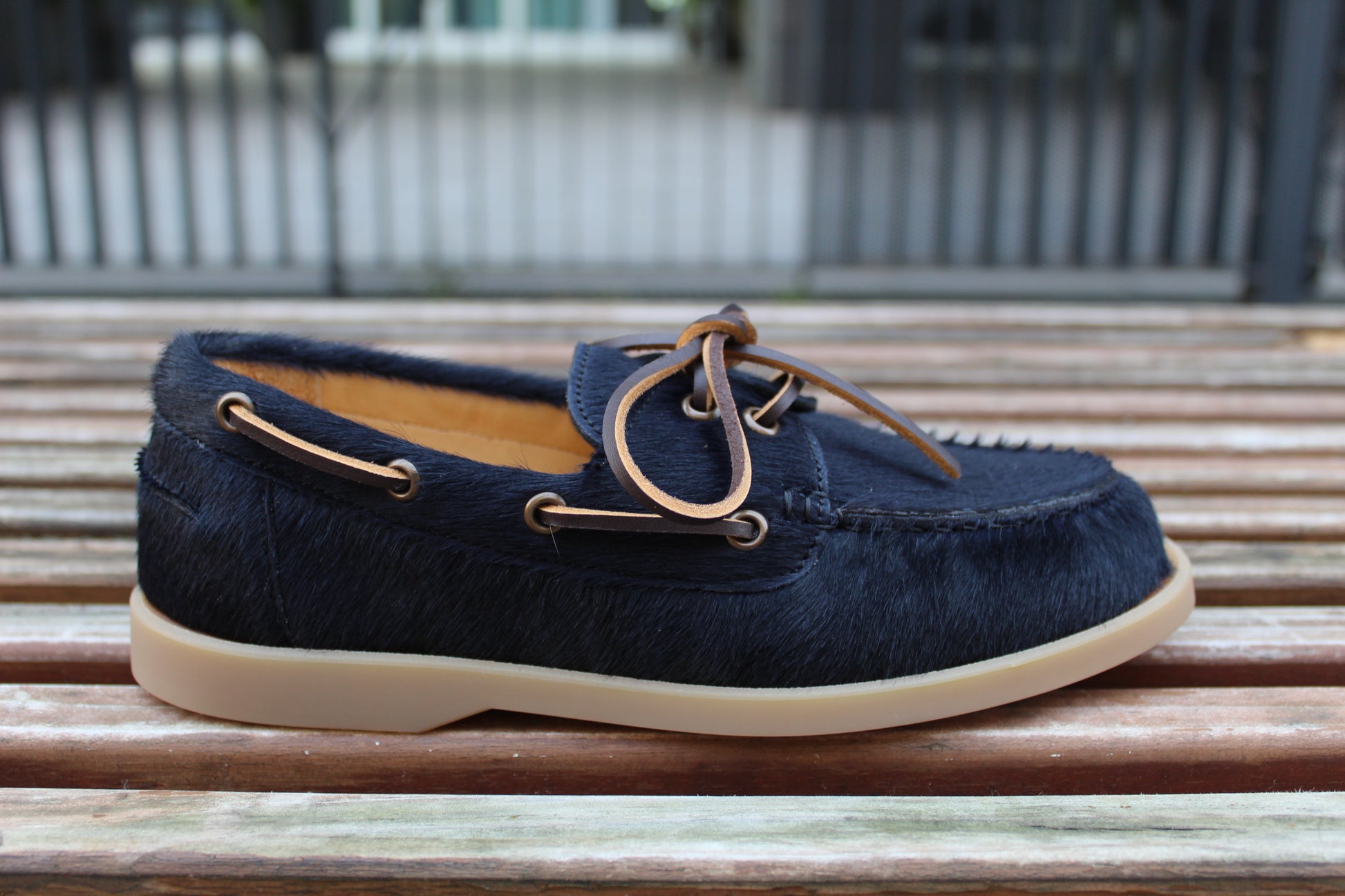 Mocassini modello da barca in vera pelle effetto cavallino color blu notte.