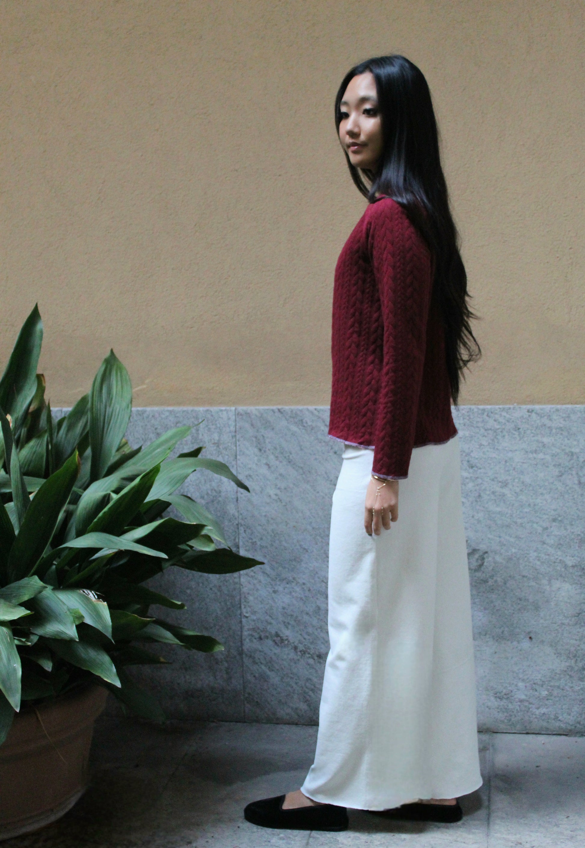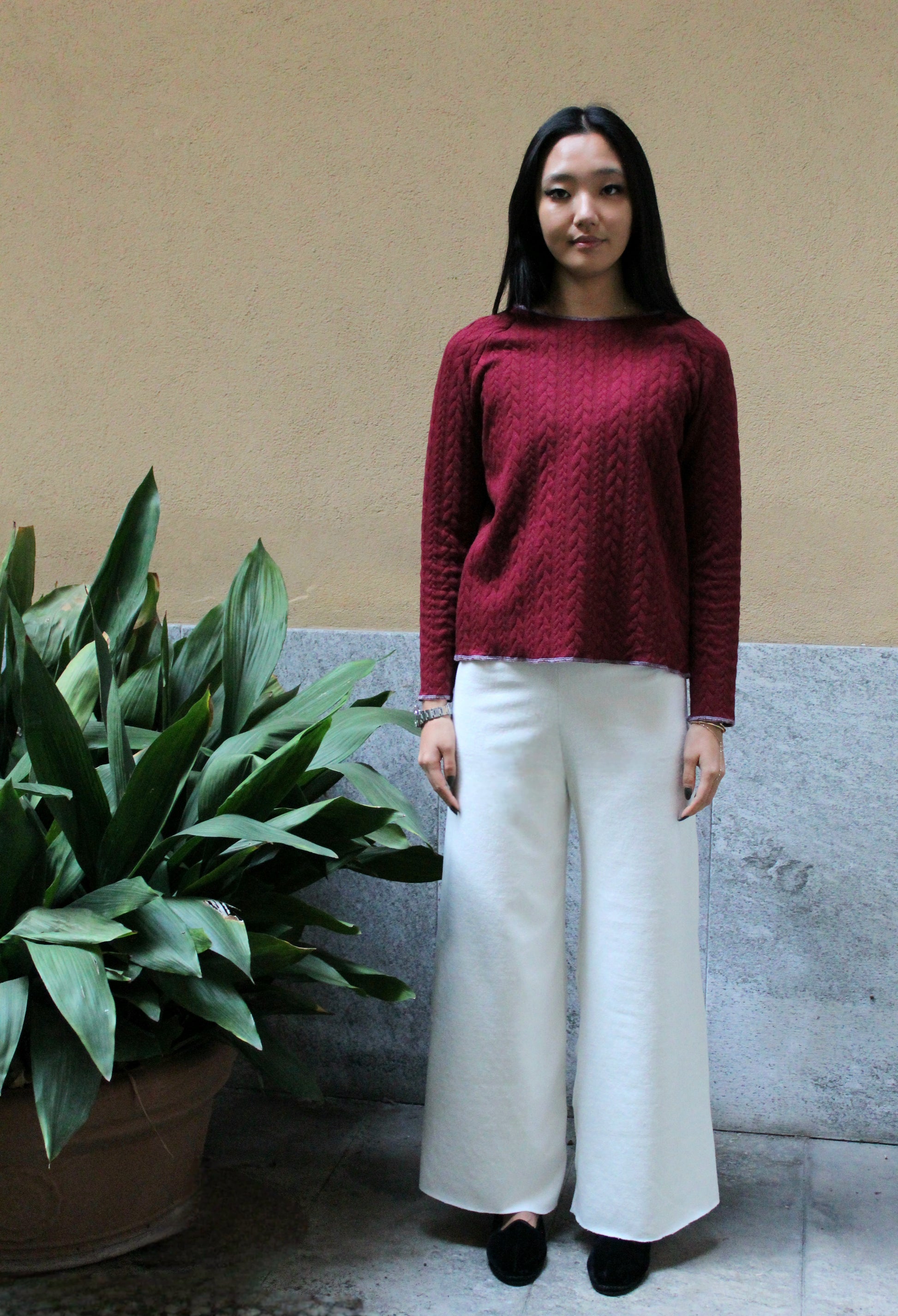 Direttamente dalla nostra sartoria, il nostro modello di pantapalazzo ha una fascia alta in vita, gamba larga leggermente ampia sul fondo per una vestibilità comoda e versatile. Sono realizzati piuttosto lunghi per permettere a seconda dell'altezza di essere tagliati sul fondo su misura. Una volta tagliati non c'è bisogno di fare orli perché il materiale non si sfila e vengono lasciati a taglio vivo.