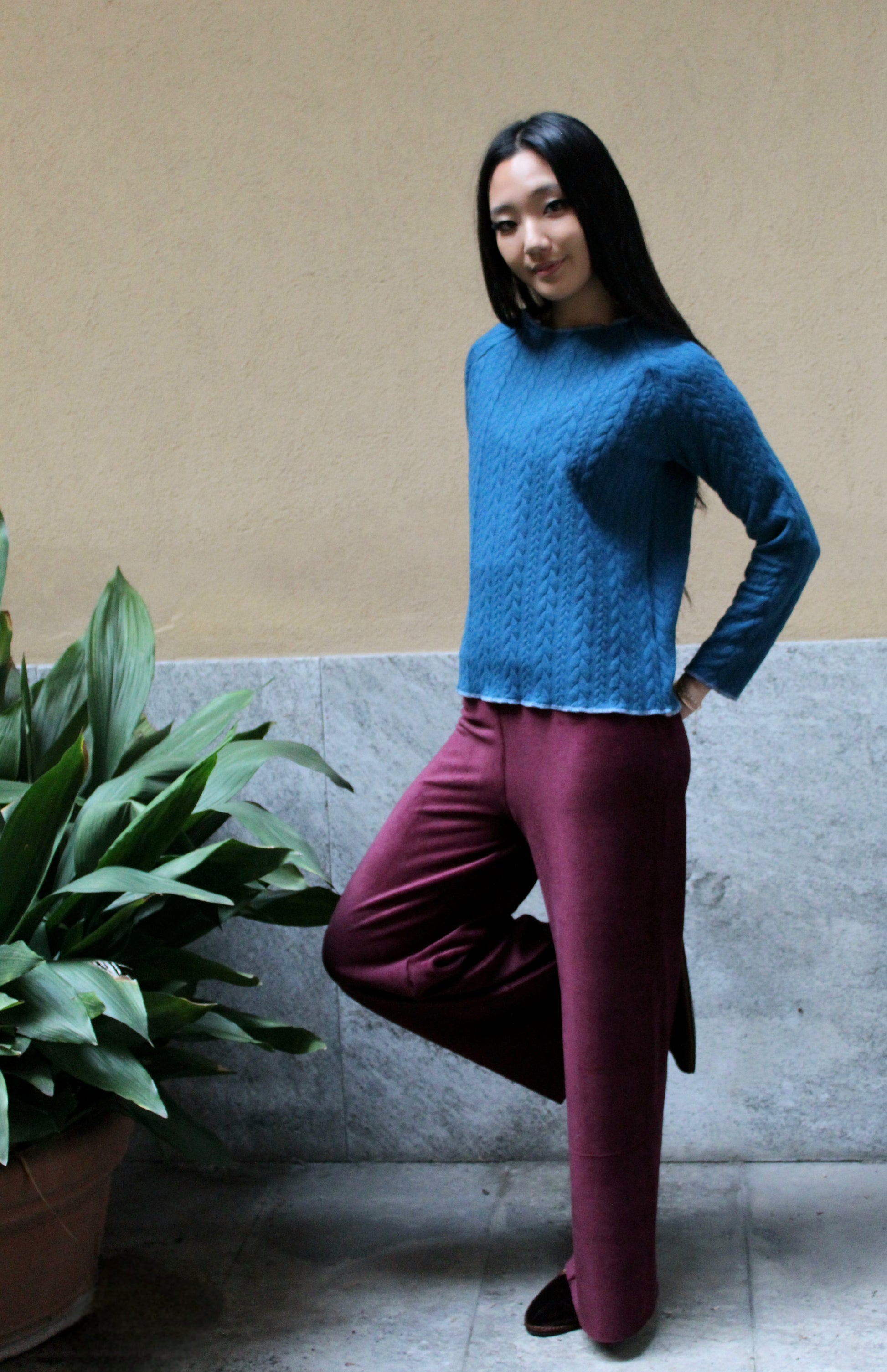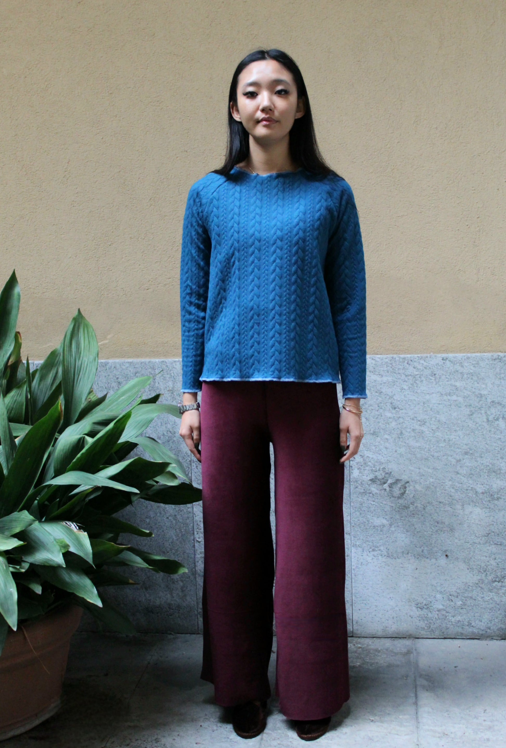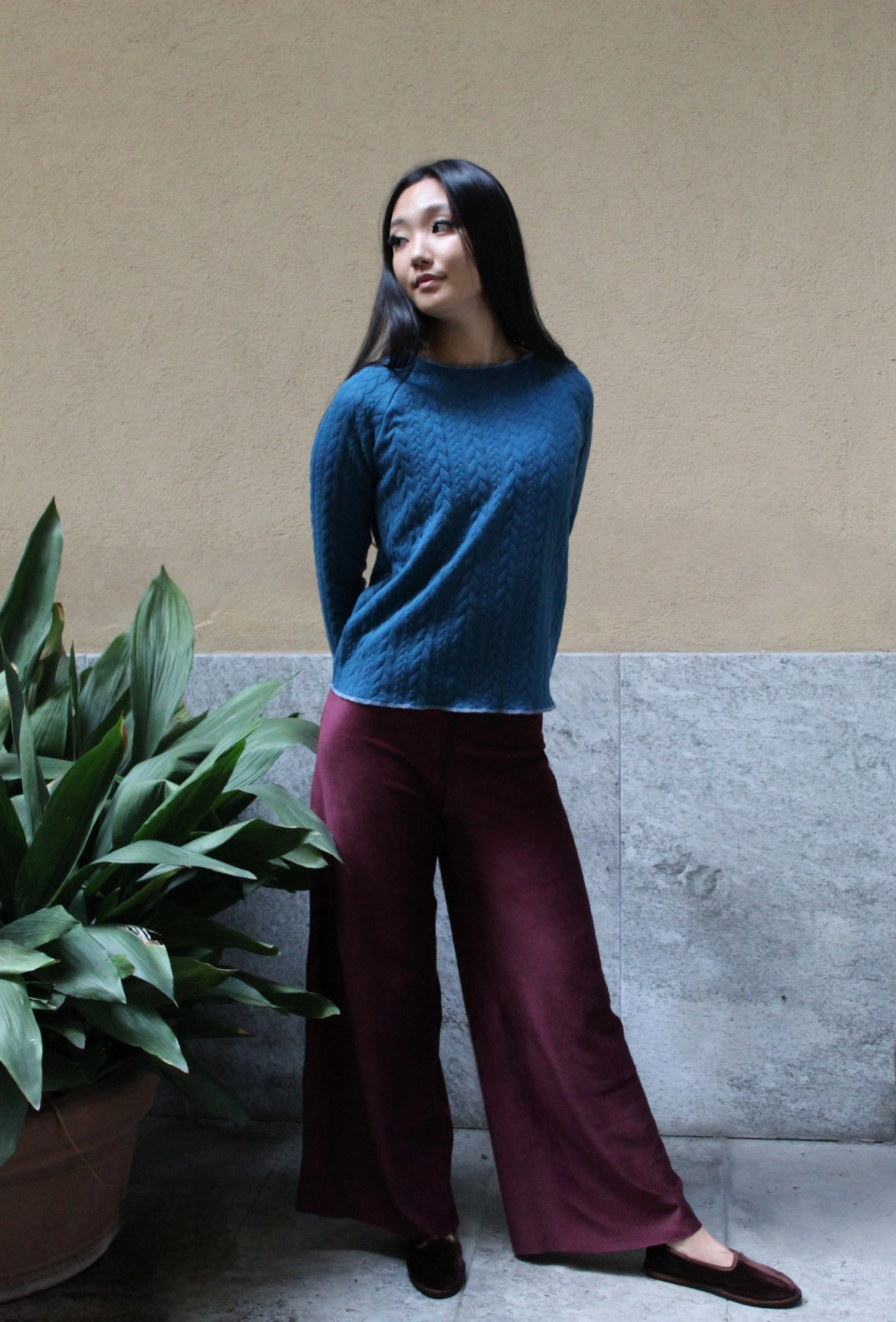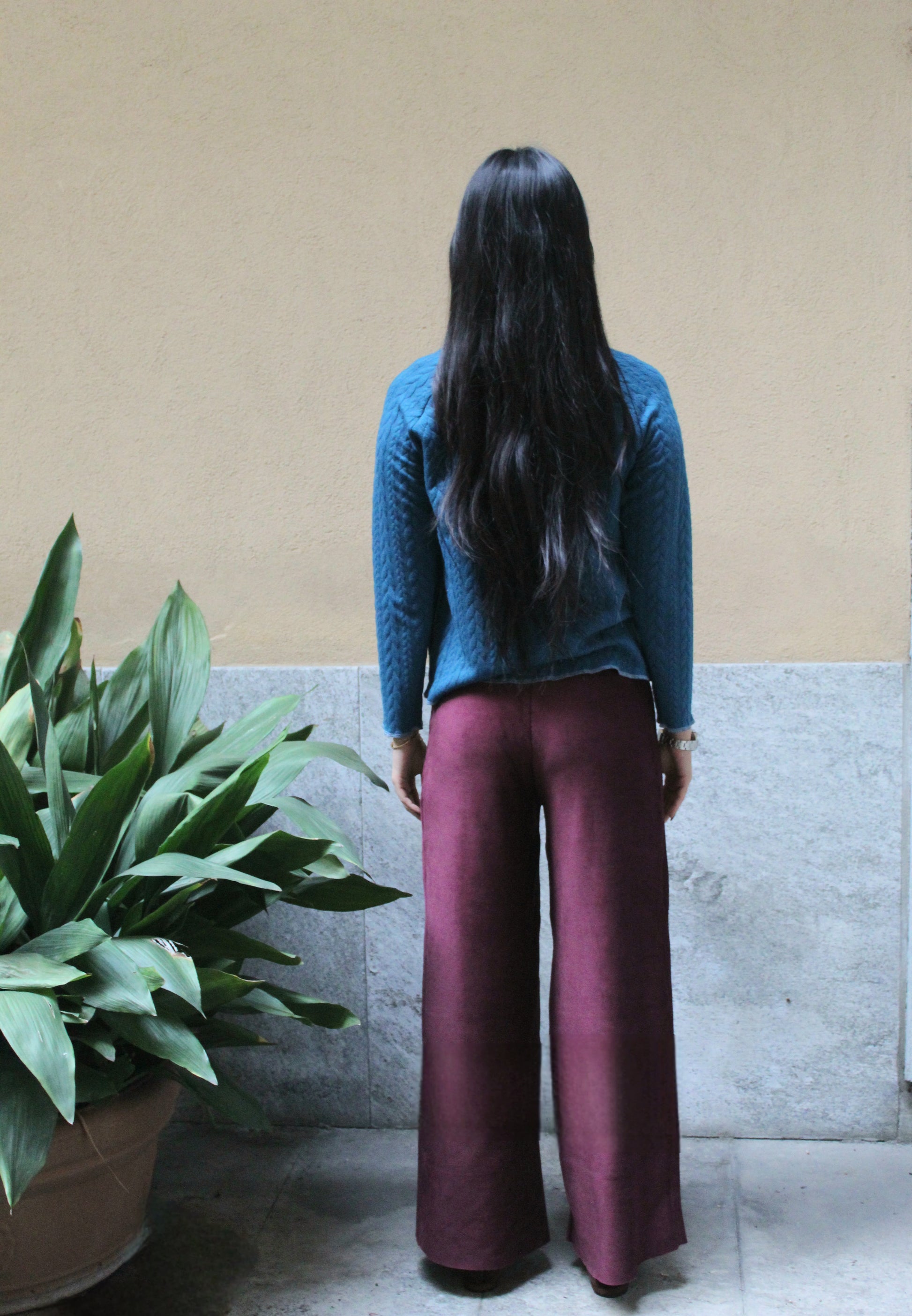 Direttamente dalla nostra sartoria, il nostro modello di pantapalazzo ha una fascia alta in vita, gamba larga leggermente ampia sul fondo per una vestibilità comoda e versatile. Sono realizzati piuttosto lunghi per permettere a seconda dell'altezza di essere tagliati sul fondo su misura. Una volta tagliati non c'è bisogno di fare orli perché il materiale non si sfila e vengono lasciati a taglio vivo.