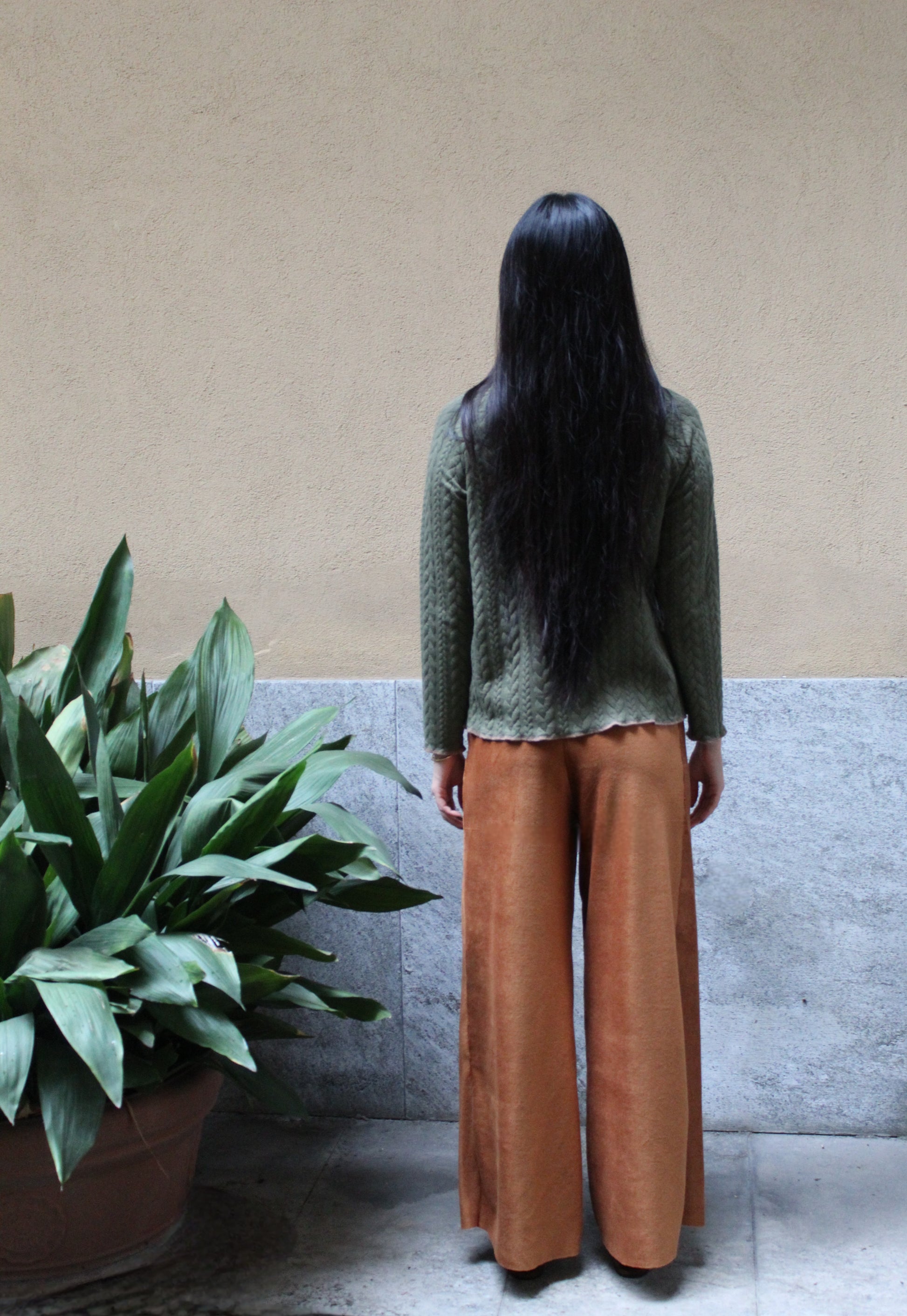 Direttamente dalla nostra sartoria, il nostro modello di pantapalazzo ha una fascia alta in vita, gamba larga leggermente ampia sul fondo per una vestibilità comoda e versatile. Sono realizzati piuttosto lunghi per permettere a seconda dell'altezza di essere tagliati sul fondo su misura. Una volta tagliati non c'è bisogno di fare orli perché il materiale non si sfila e vengono lasciati a taglio vivo.