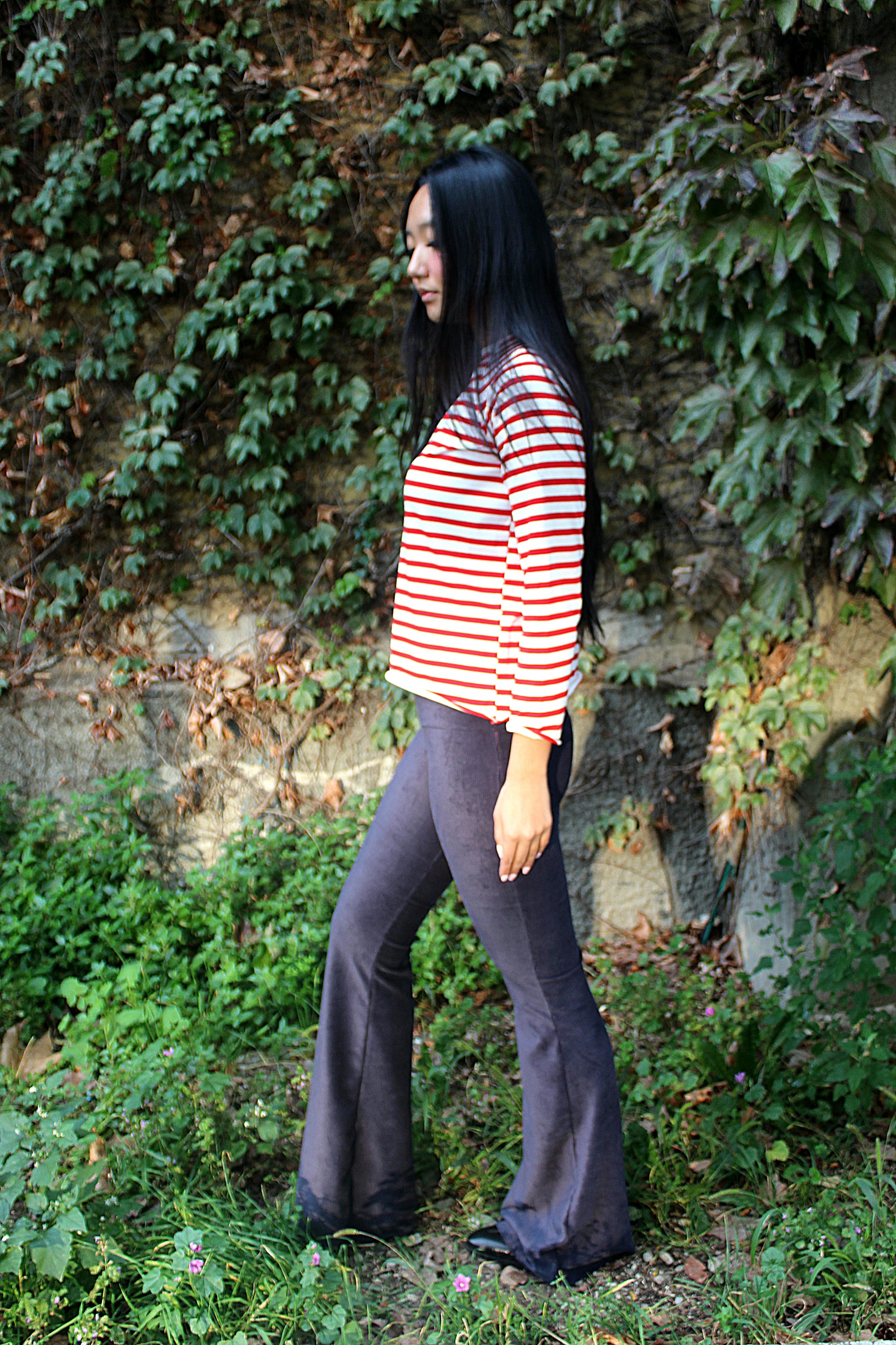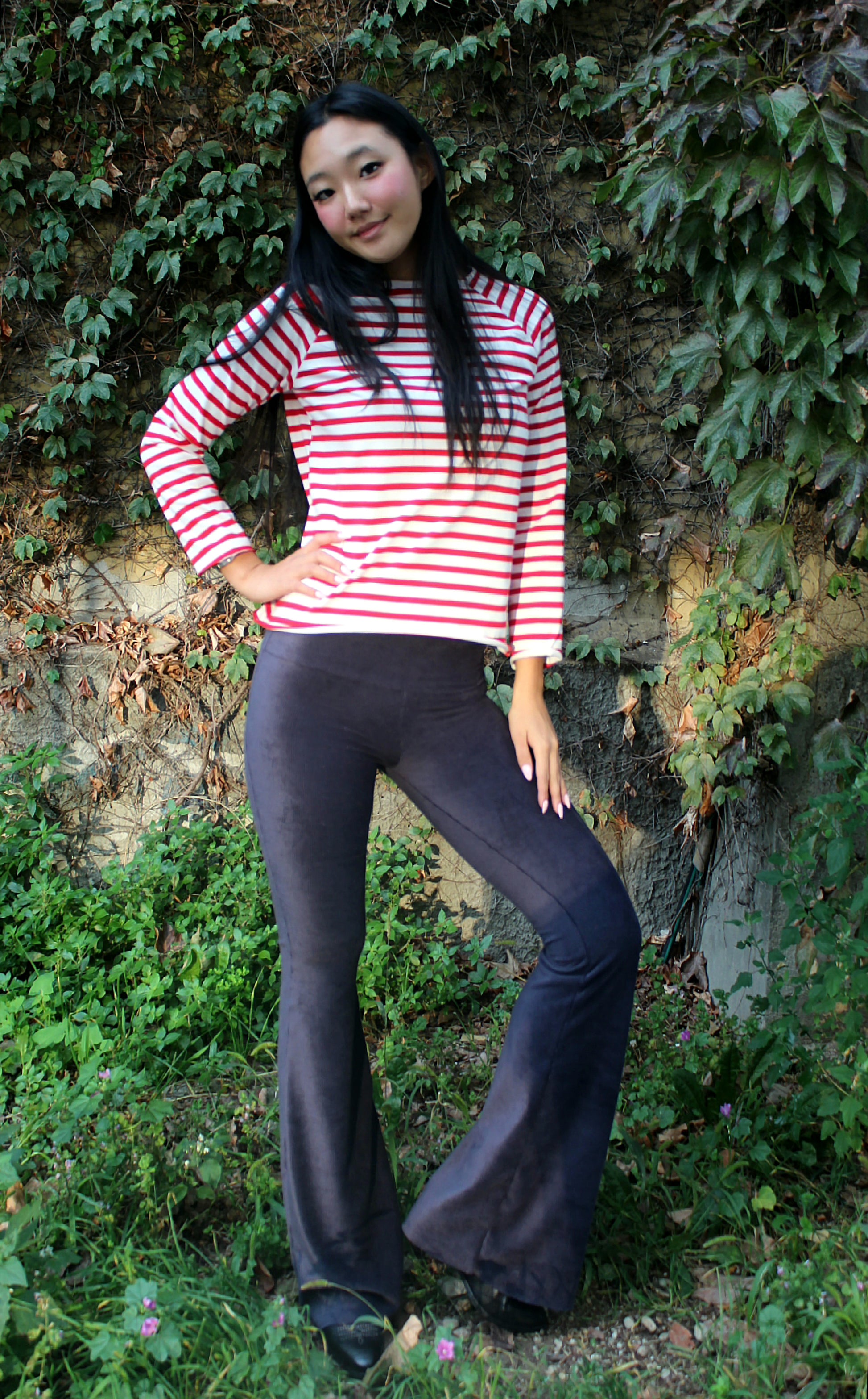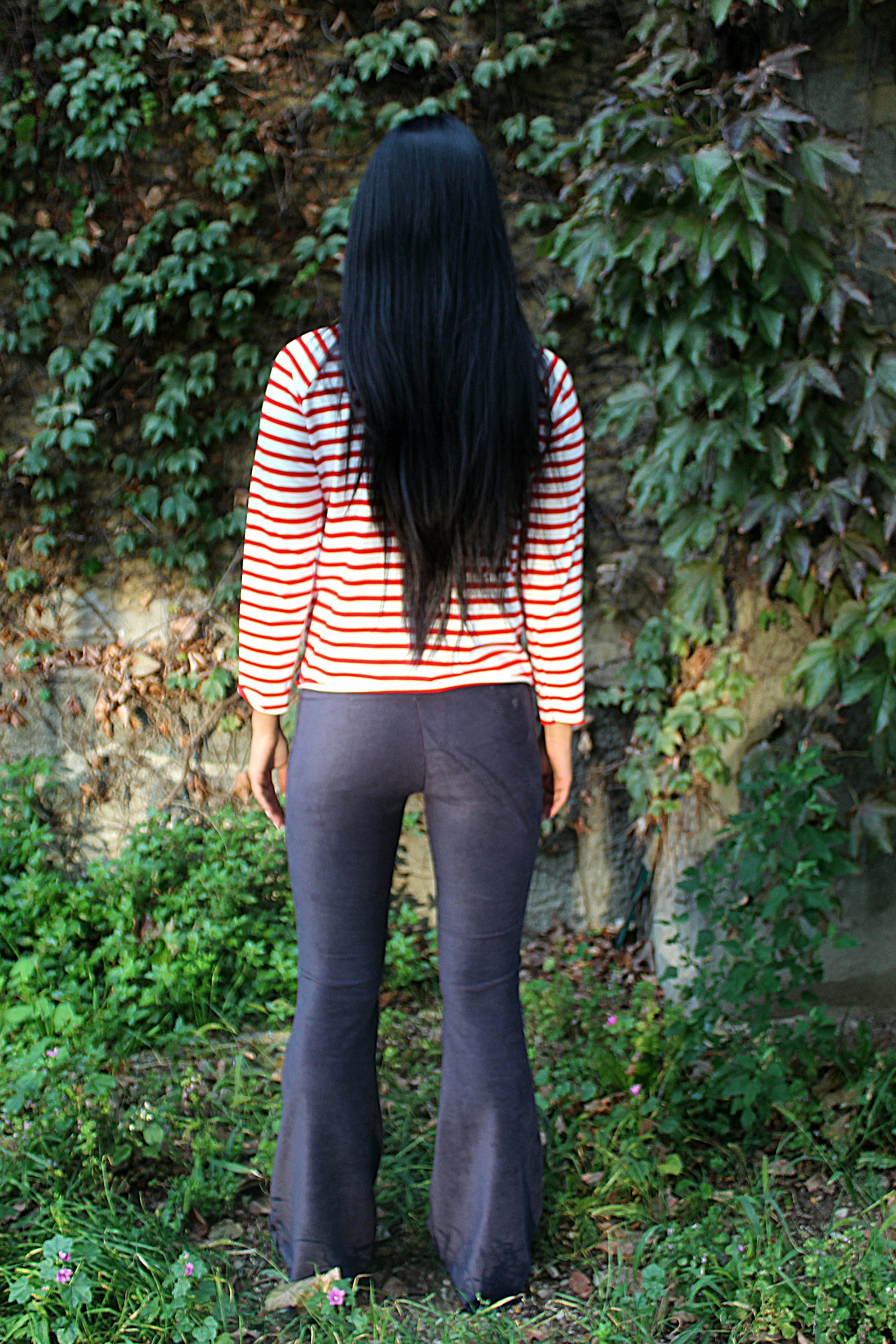 Direttamente dalla nostra sartoria, il nostro modello di pantazampa ha una vestibilità aderente in vita e sulla coscia e termina a zampa dal ginocchio in giù. Sono realizzati piuttosto lunghi e con una zampa molto ampia per permettere a seconda dell'altezza di essere tagliati sul fondo su misura. Una volta tagliati non c'è bisogno di fare orli perché il materiale non si sfila e vengono lasciati a taglio vivo.