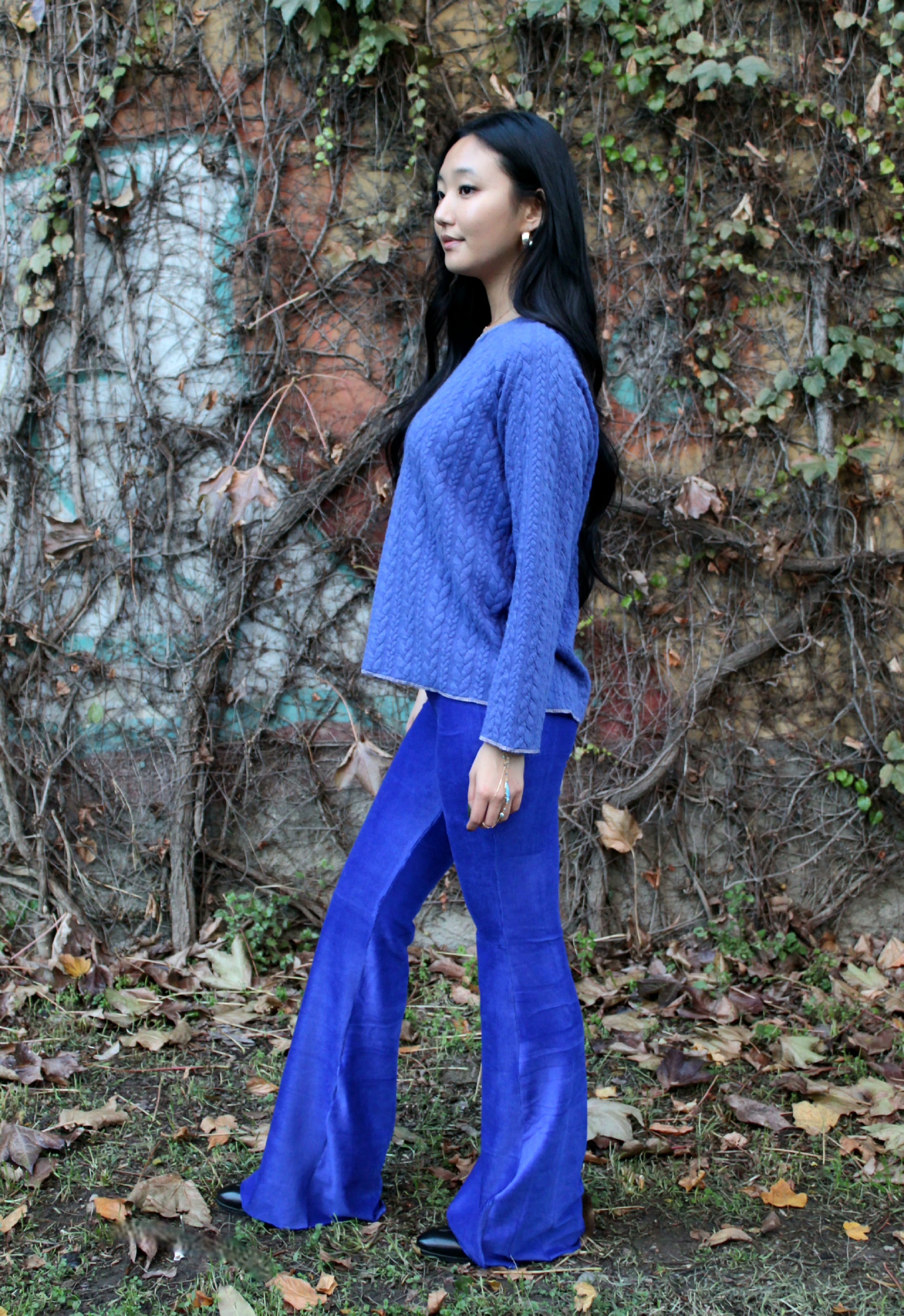 Direttamente dalla nostra sartoria, il nostro modello di pantazampa ha una vestibilità aderente in vita e sulla coscia e termina a zampa dal ginocchio in giù. Sono realizzati piuttosto lunghi e con una zampa molto ampia per permettere a seconda dell'altezza di essere tagliati sul fondo su misura. Una volta tagliati non c'è bisogno di fare orli perché il materiale non si sfila e vengono lasciati a taglio vivo.