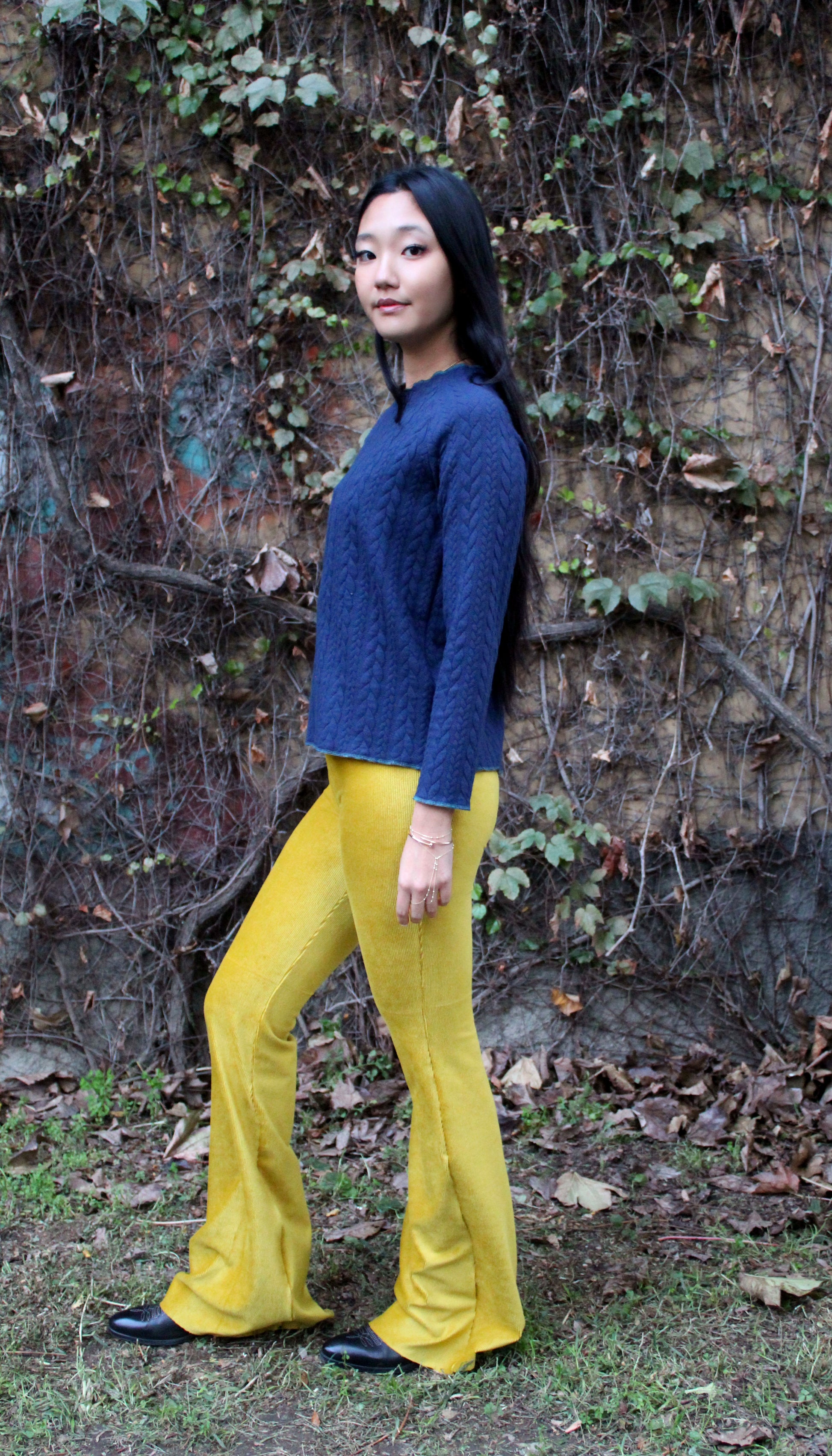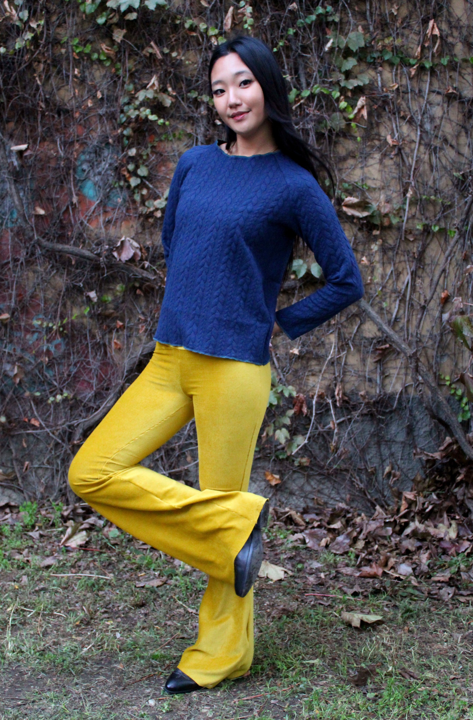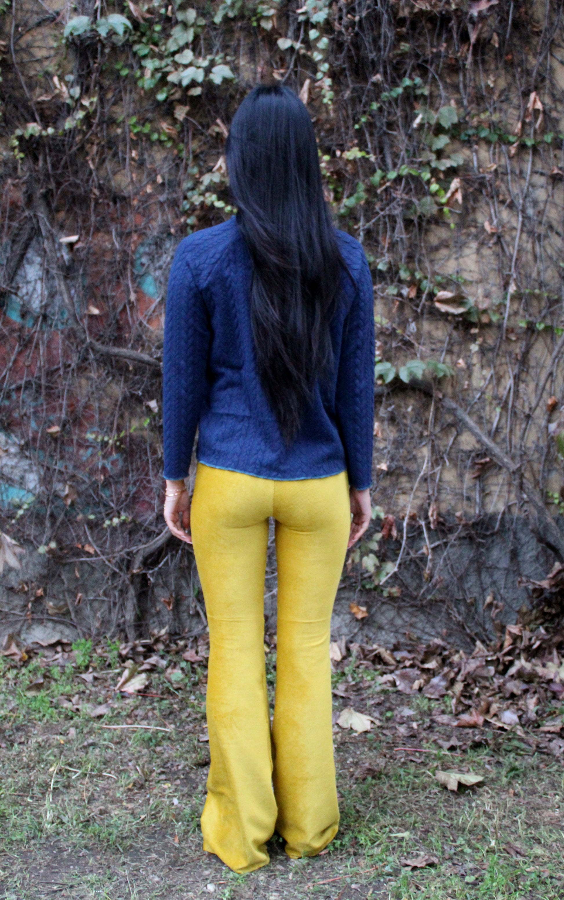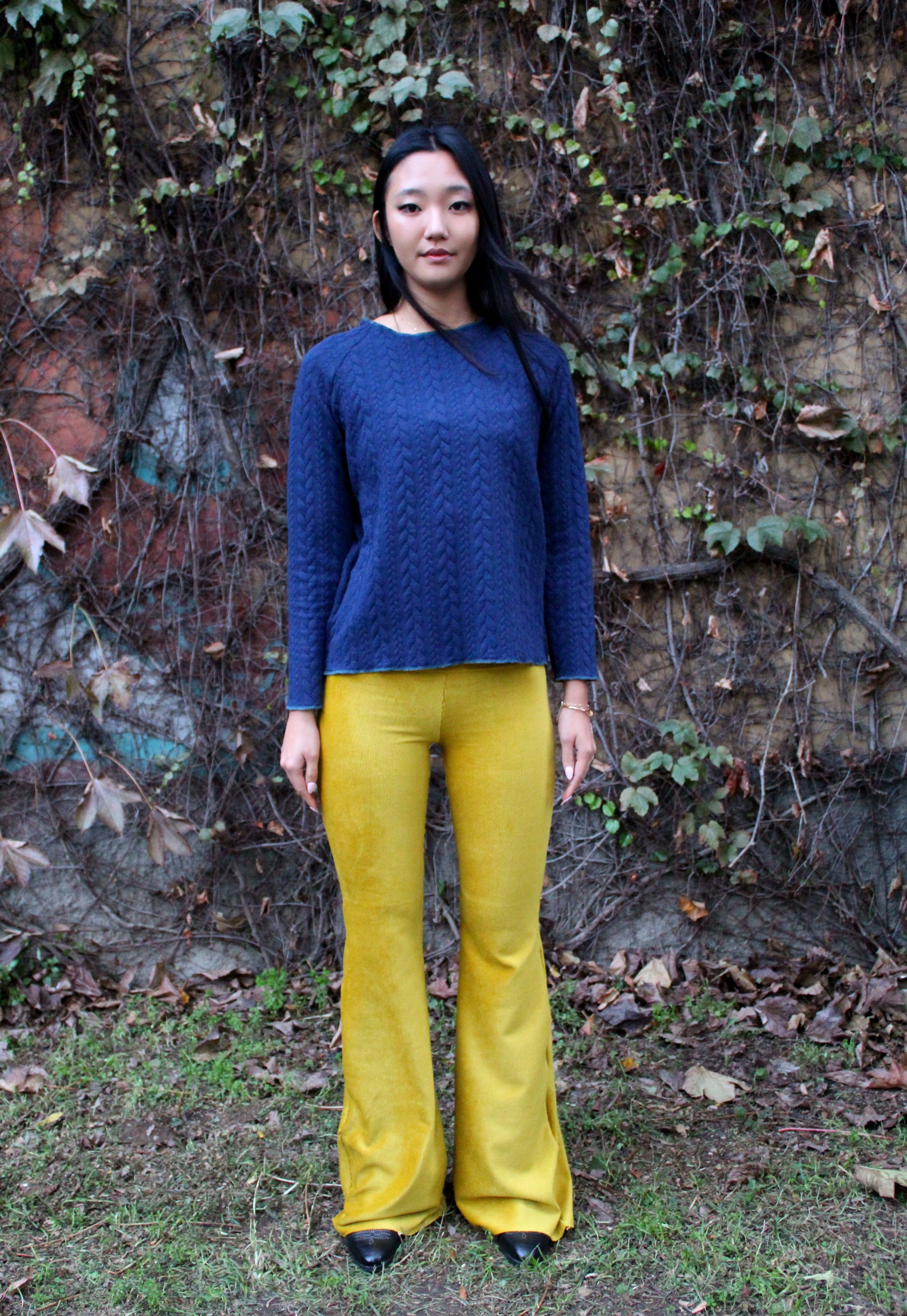 Direttamente dalla nostra sartoria, il nostro modello di pantazampa ha una vestibilità aderente in vita e sulla coscia e termina a zampa dal ginocchio in giù. Sono realizzati piuttosto lunghi e con una zampa molto ampia per permettere a seconda dell'altezza di essere tagliati sul fondo su misura. Una volta tagliati non c'è bisogno di fare orli perché il materiale non si sfila e vengono lasciati a taglio vivo.
