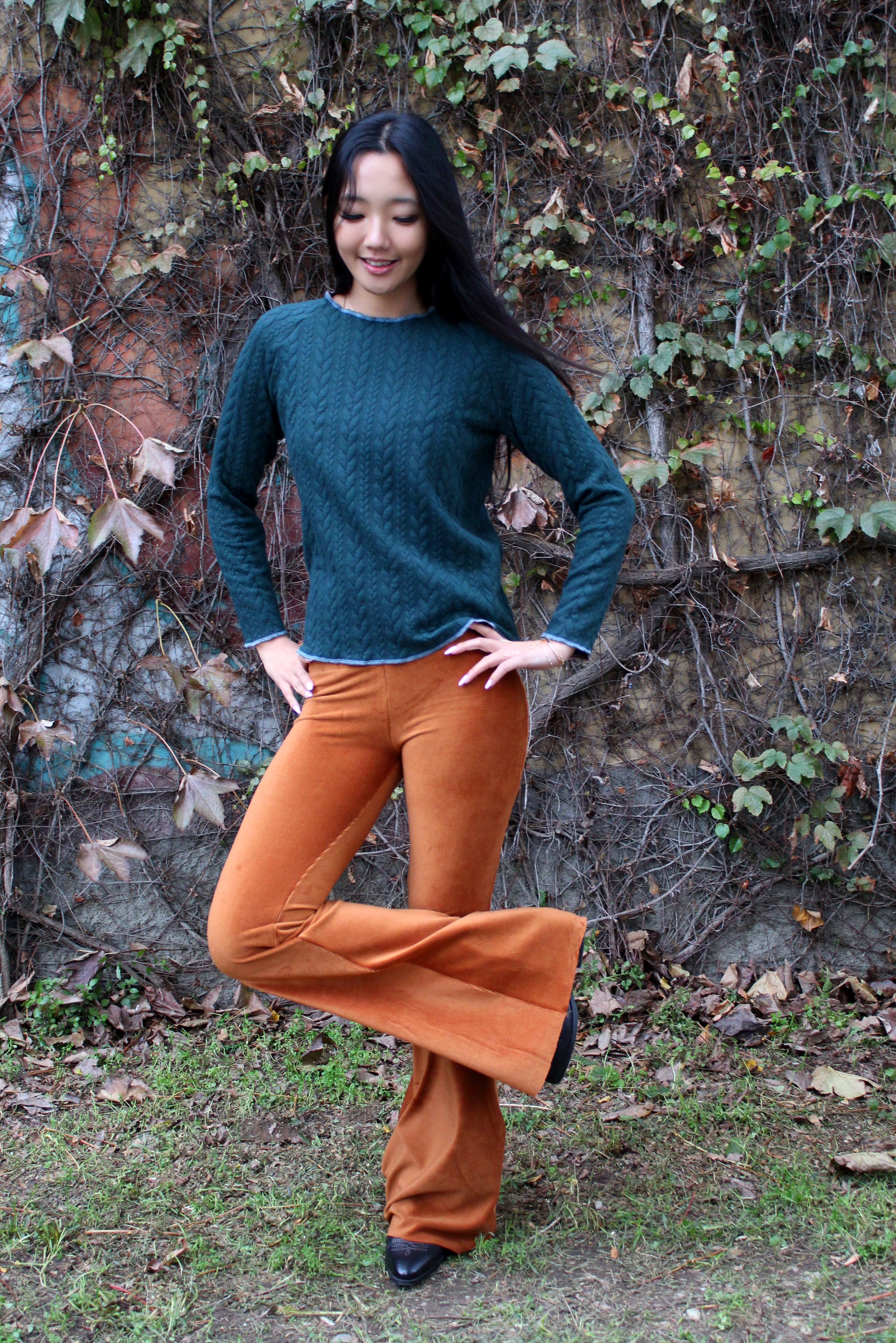 Direttamente dalla nostra sartoria, il nostro modello di pantazampa ha una vestibilità aderente in vita e sulla coscia e termina a zampa dal ginocchio in giù. Sono realizzati piuttosto lunghi e con una zampa molto ampia per permettere a seconda dell'altezza di essere tagliati sul fondo su misura. Una volta tagliati non c'è bisogno di fare orli perché il materiale non si sfila e vengono lasciati a taglio vivo.