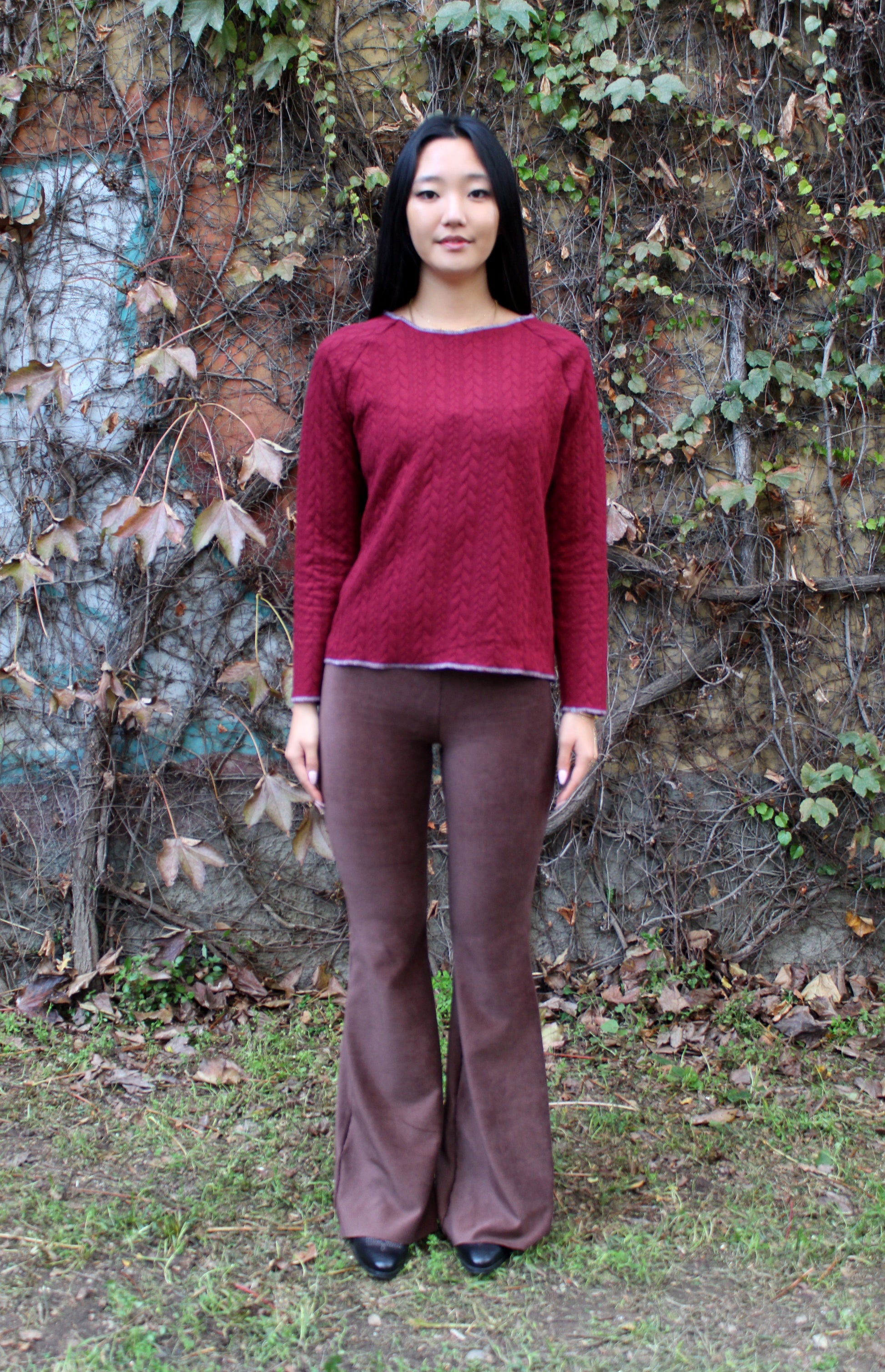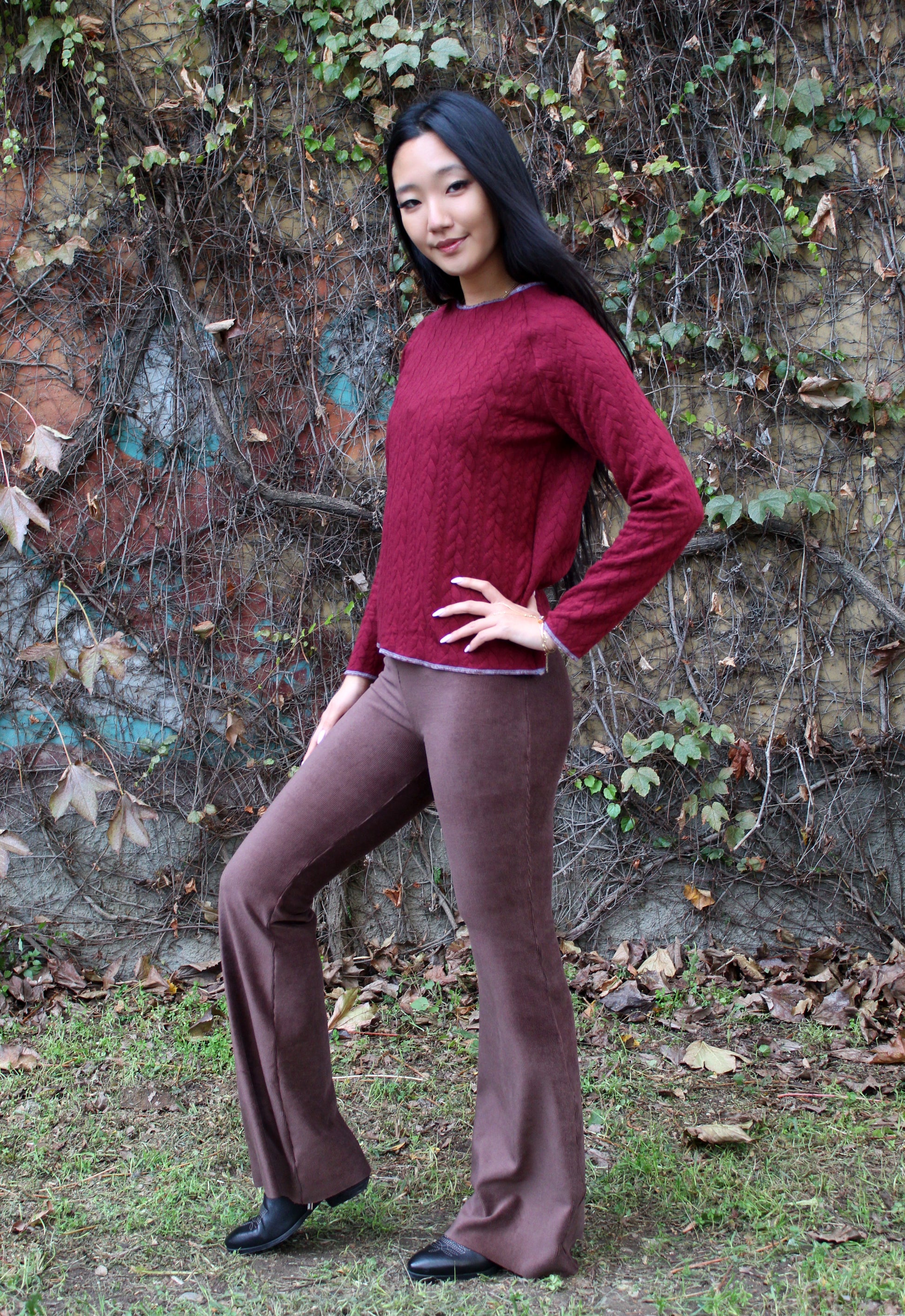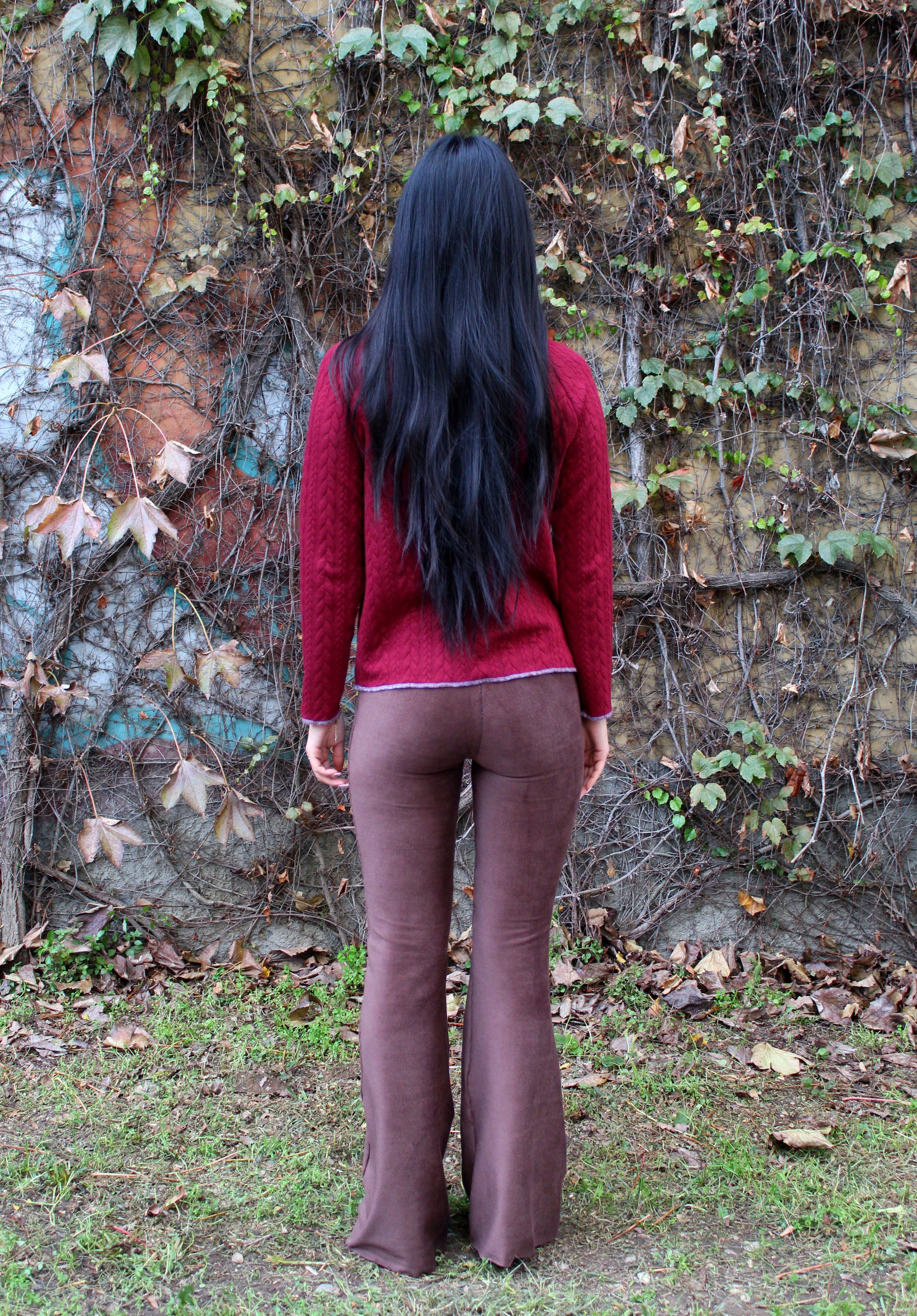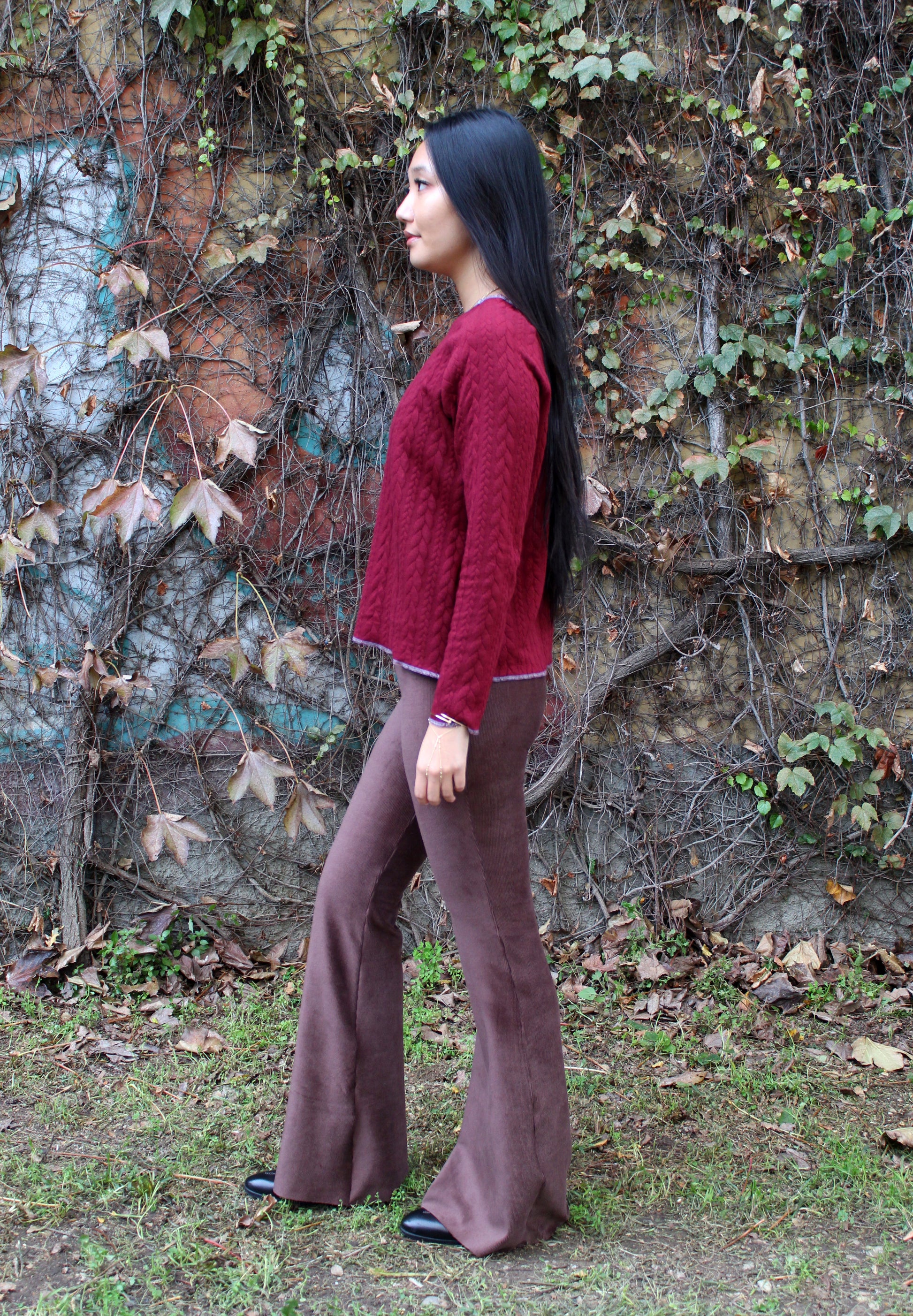 Direttamente dalla nostra sartoria, il nostro modello di pantazampa ha una vestibilità aderente in vita e sulla coscia e termina a zampa dal ginocchio in giù. Sono realizzati piuttosto lunghi e con una zampa molto ampia per permettere a seconda dell'altezza di essere tagliati sul fondo su misura. Una volta tagliati non c'è bisogno di fare orli perché il materiale non si sfila e vengono lasciati a taglio vivo.