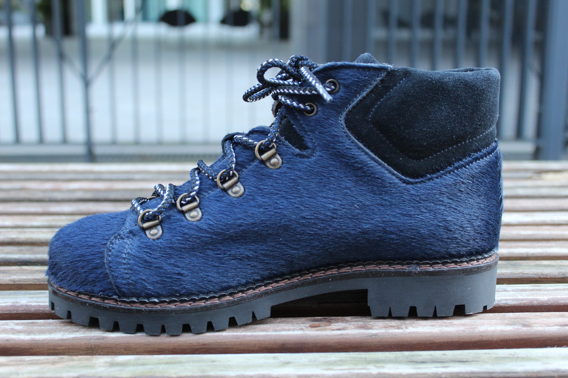 Dettagli di cuciture fatte a mano, interni in vera pelle e cuoio e suola in gomma antiscivolo.