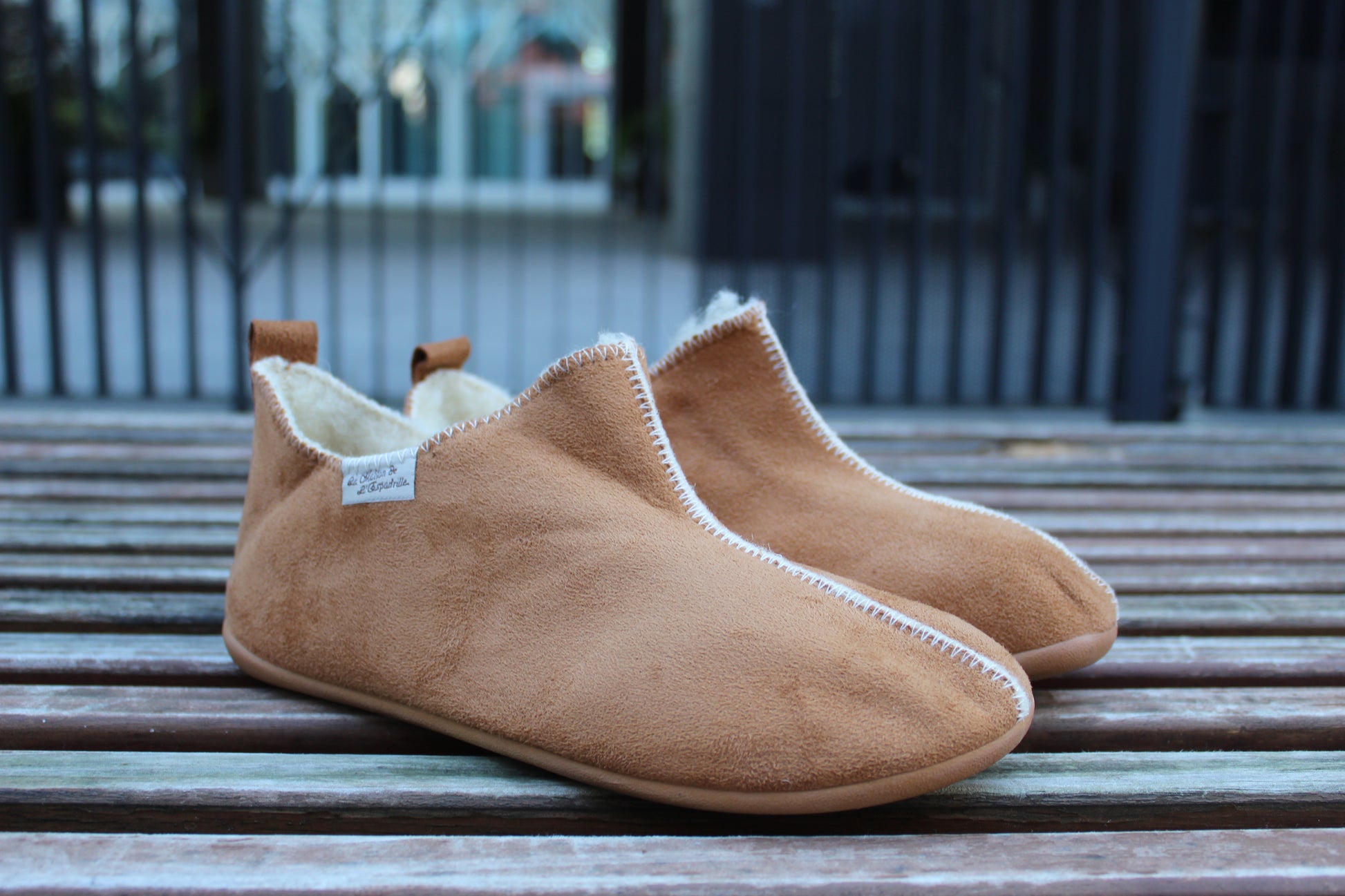 Stivaletto effetto velour in alcantara e pura lana vergine cammello.
