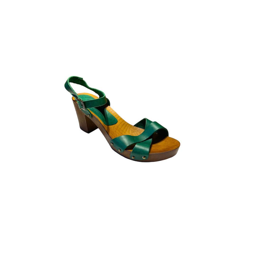 Zoccoli in pelle verde mela